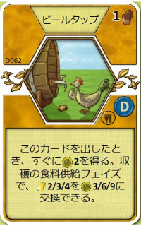 | このカードを出したとき、すぐに食料2を得る。収穫の食料供給フェイズで、小麦2/3/4を食料3/6/9に交換できる。 | |||
