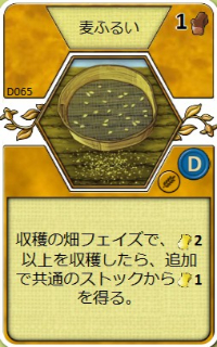 | 収穫の畑フェイズで、小麦2以上を収穫したら、追加で共通のストックから小麦1を得る。 | |||